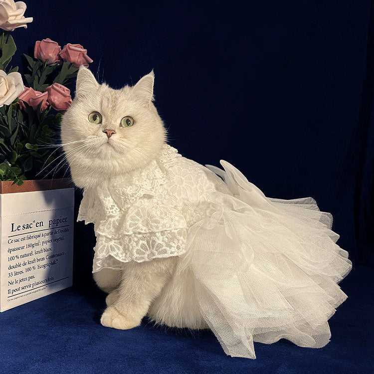 White Embroidered Princess - style Wedding Cat Dress – Pure Elegance for Your Feline Bride